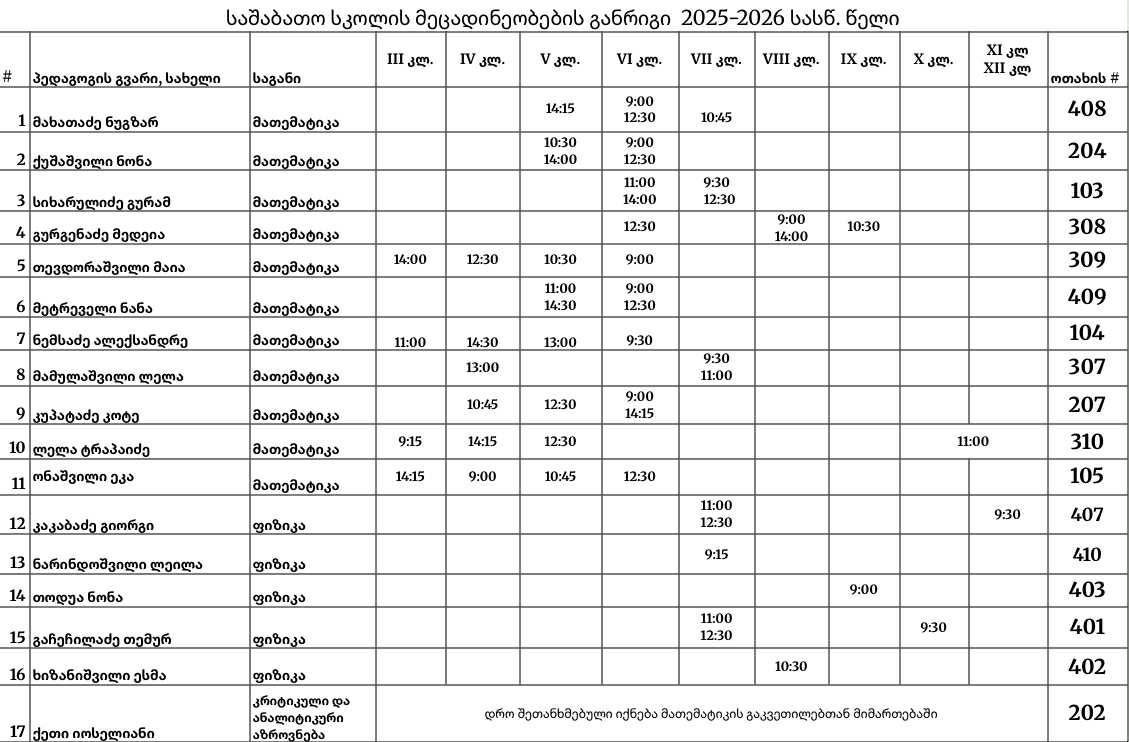 მეცადინეობების განრიგი შეგიძლიათ იხილოთ თანდართულ დოკუმენტში.
